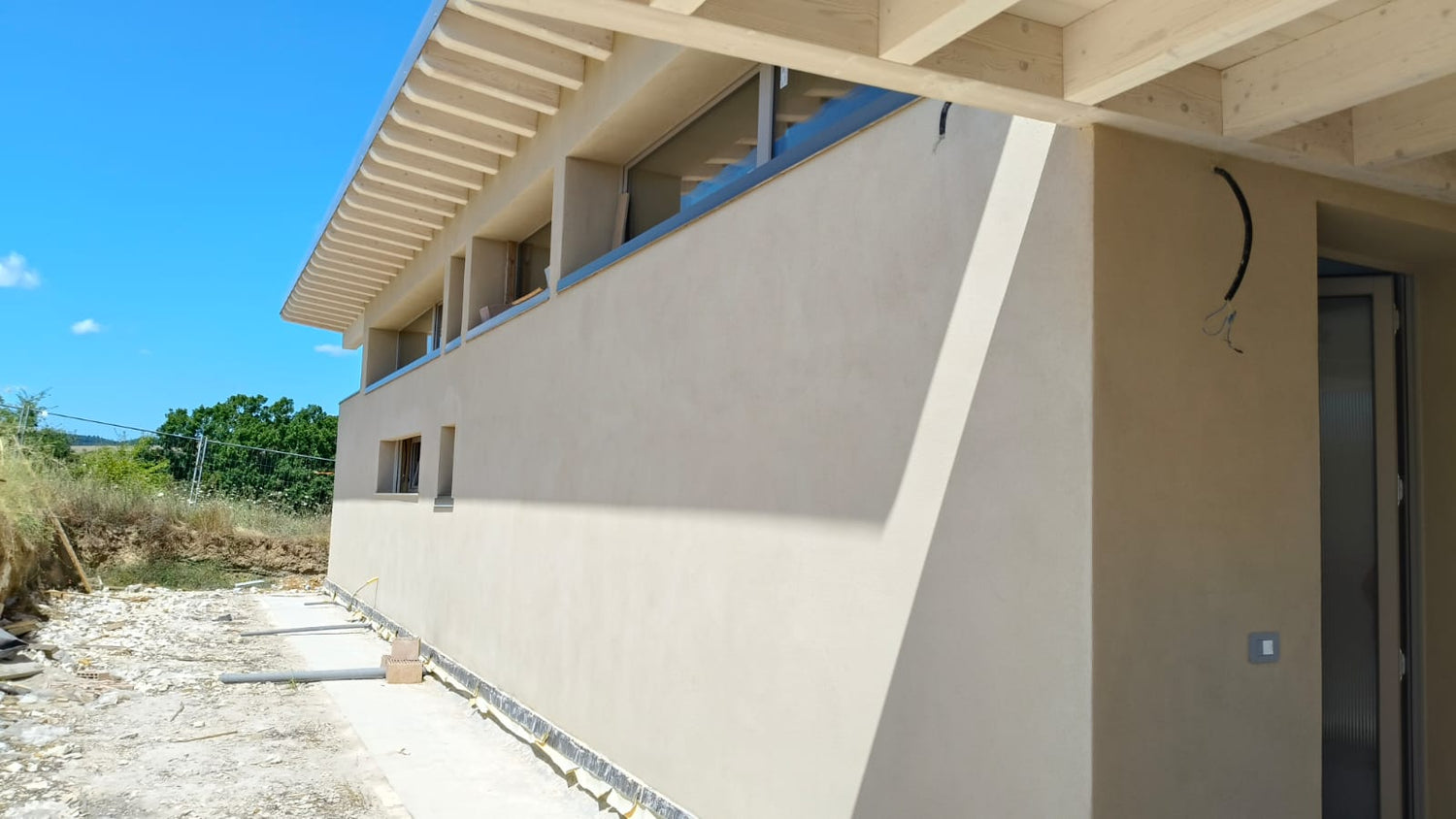 Questa realizzazione TESGA rappresenta un edificio a energia quasi zero, costruito con materiali naturali e tecniche di bioedilizia avanzata.